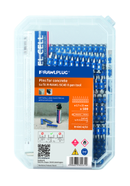 Gwoździe do betonu łączone plastikiem śr.2,8x38mm przeznaczone do montażu uchwytów i korytek kablowych, profili w systemach suchej zabudowy, branży wodno-kanalizacyjnej oraz HVAC.